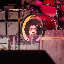 Jimi Hendrix on front of Chris Layton's drums